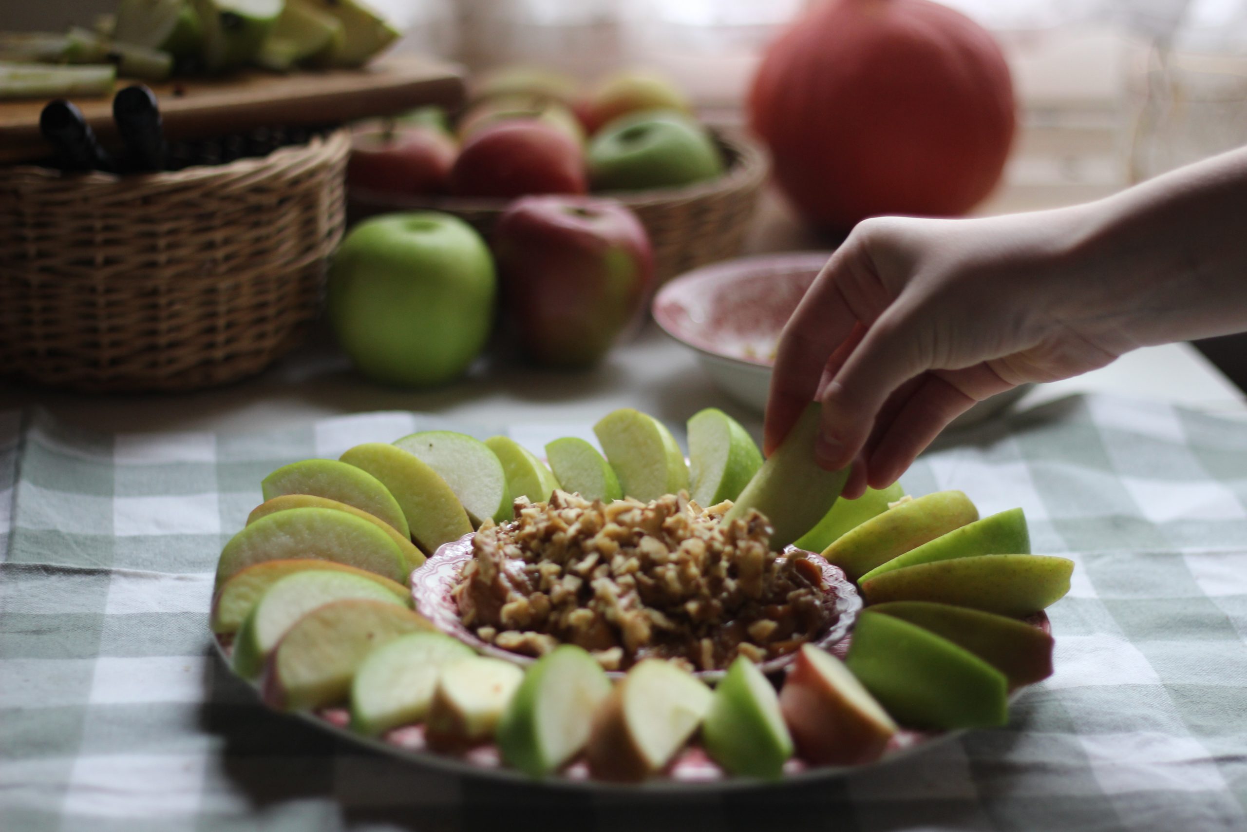 • Als Fingerfood servieren: Den Karamell-Dip in eine kleine Schale geben, Apfelspalten drum herum arrangieren. Besonders hübsch auf einem Holzbrett oder Teller mit etwas Zimt bestäubt.