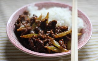 Brate das Hackfleich kräftig an un füge zum Schluss den kleingehackten Ingwer und Knoblauch dazu un lass alles zusammen bei geringer Hitze etwas weiter garen bis Knoblauch und Ingwer gar sind. Nun kommen Sojasauce und Austernsauce dazu und lass nochmal alles soweit einkochen dass die Flüssigkeit verdampft ist.