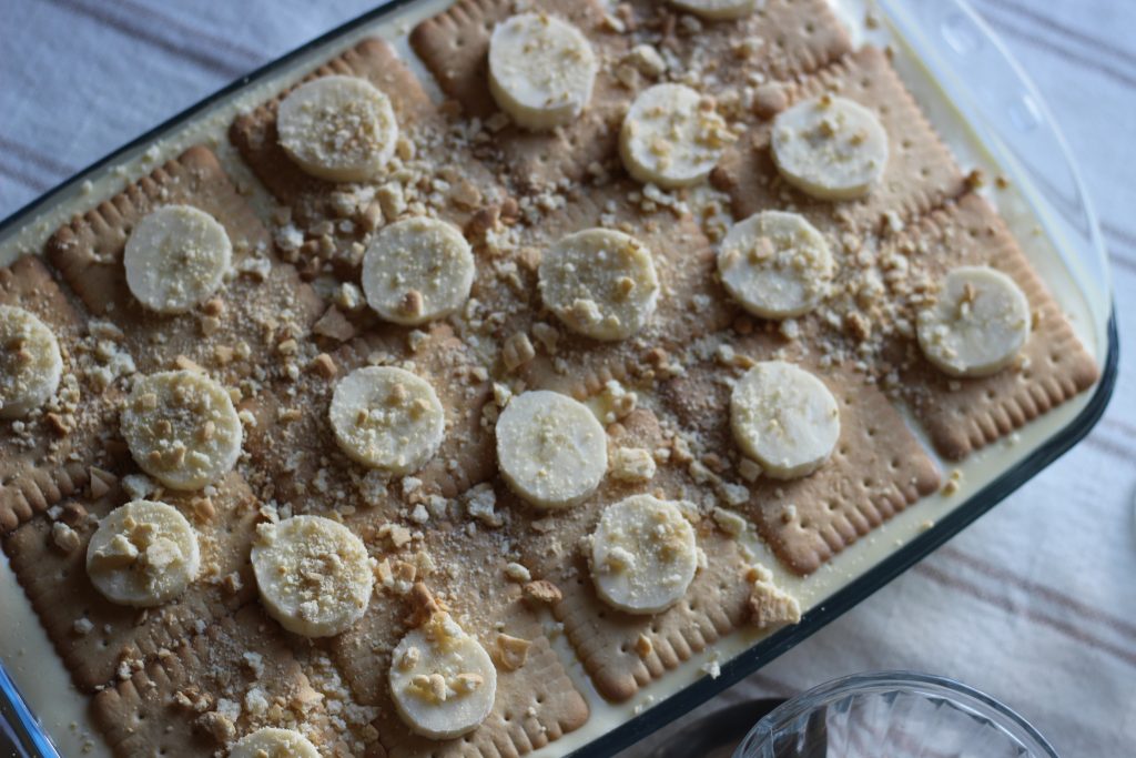 Rezept für einen köstlichen Bananenpudding mit Quark und Butterkeksen