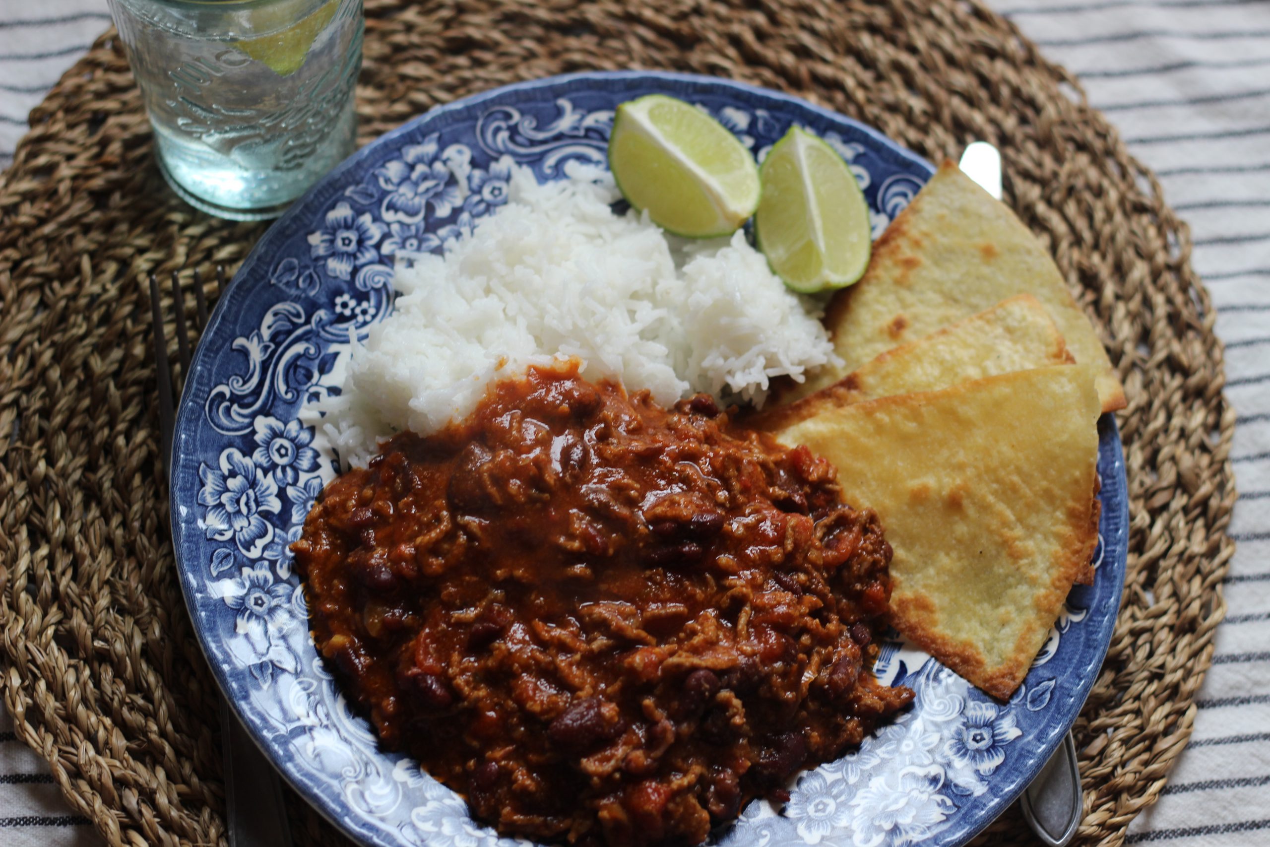 • Chilli con Carne schmeckt gut zu Reis und Tortillachips