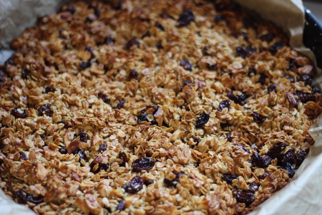Die Zusammensetzung kann dabei variieren und den persönlichen Vorlieben angepasst werden. So kann der Honig ganz mit braunem Zucker ersetzt werden um ein knupsrigeres Ergebnis zu erhalten. Auch die Butter kann mit einem anderen Öl ersetzt werden. Nüsse, Schokolade, Rosinen und andere Zugaben sind optional.
