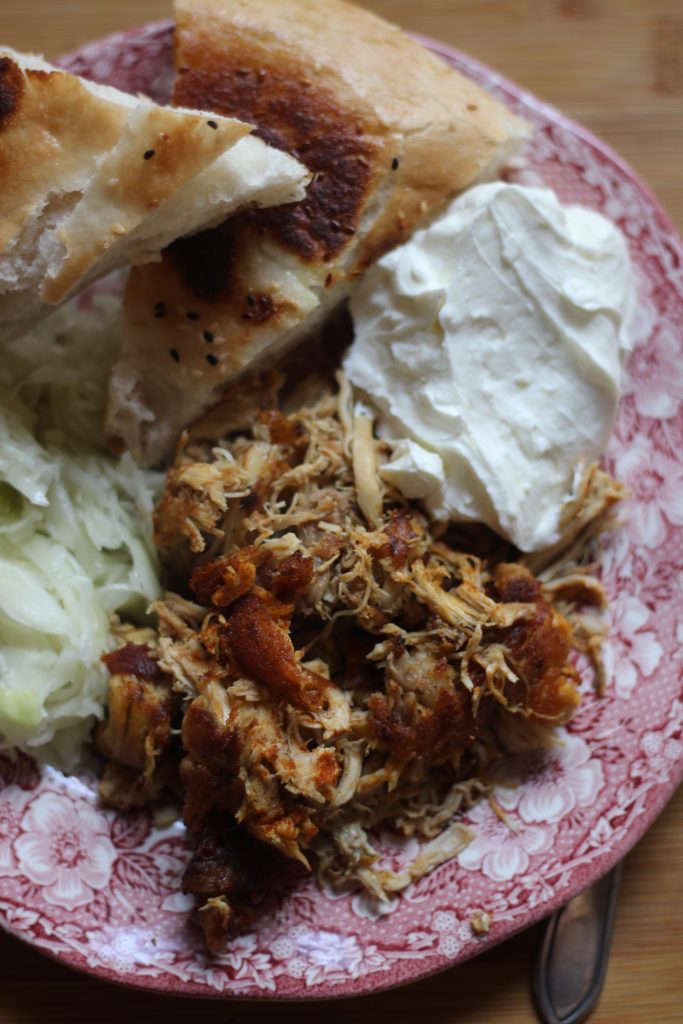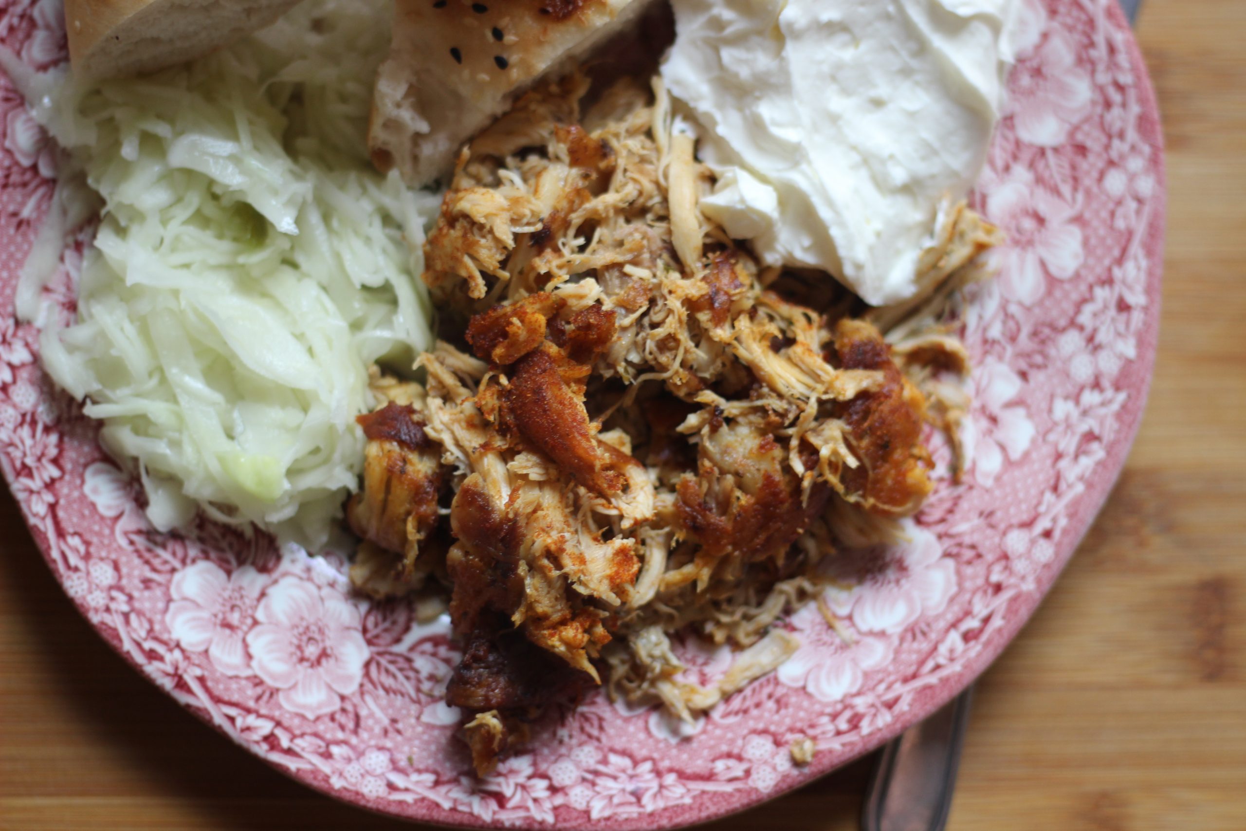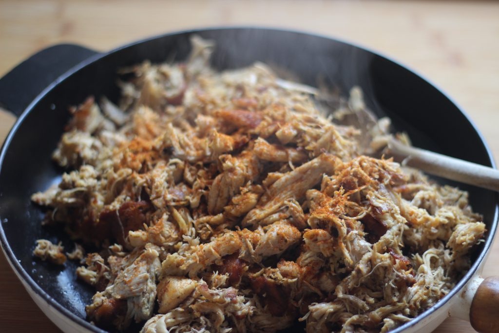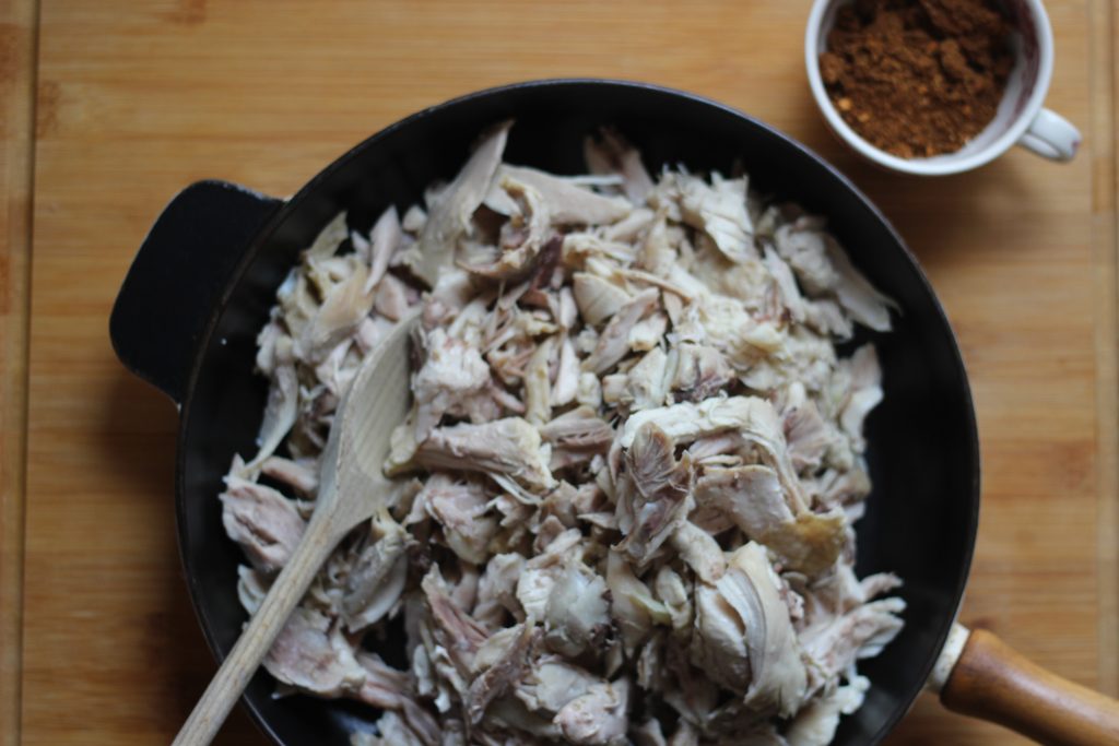 Ich koche regelmäßig Hühnerbrühe aus ganzen Hähnchen oder Hühnerkeulen, wobei eine gute Menge Fleisch übrig bleibt. Dieses verwende ich dann gerne für verschiedene Gerichte. Falls du auch regelmäßig Hühnerbrühe zubereitest, und nicht immer als Suppe essen möchtest, ist dieses Rezept eine tolle Möglichkeit, das übrig gebliebene Fleisch sinnvoll zu nutzen.