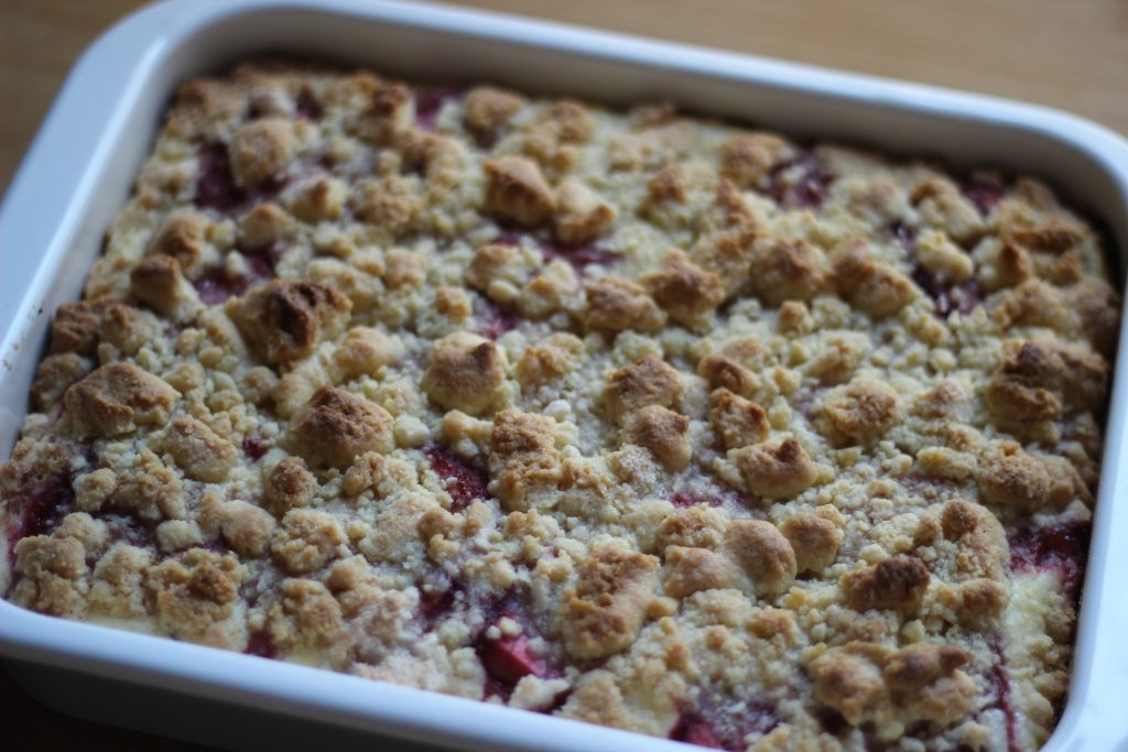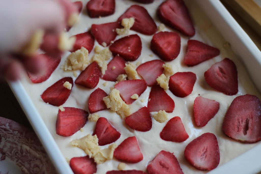 Frühlingshafte Freude: Käse-Streusel-Kuchen mit gefrorenen Erdbeeren