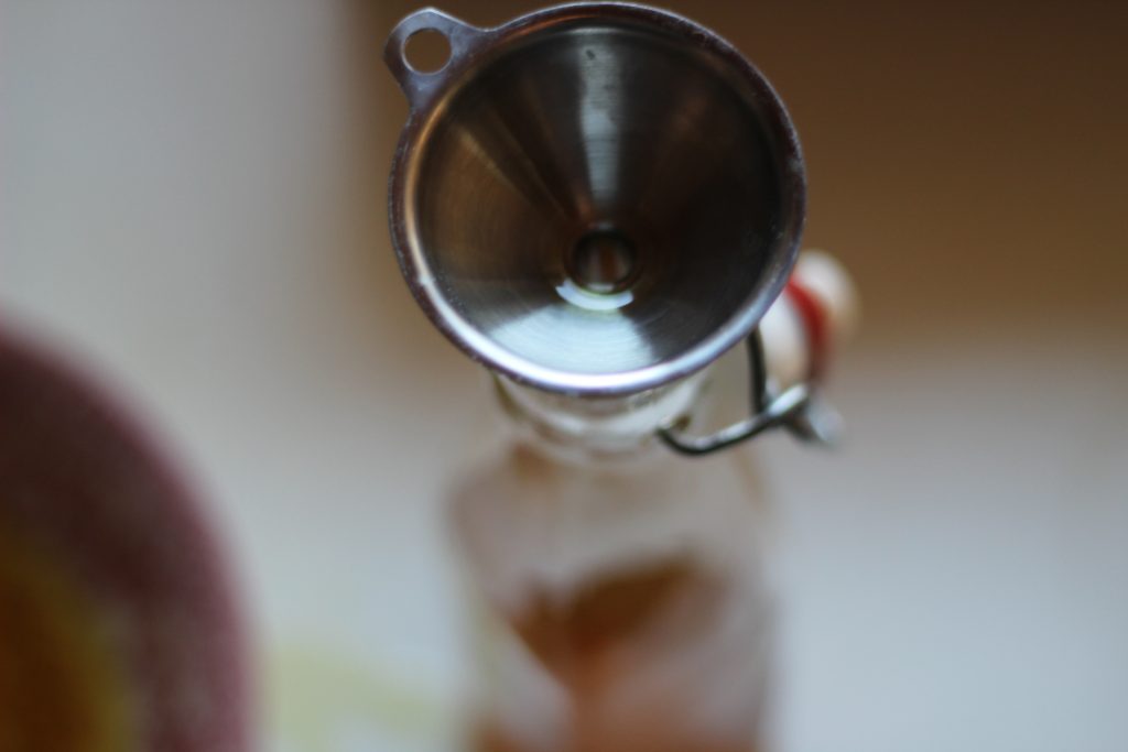 Nun muss der Ansatz 6-8 Wochen ziehen und kann dann mit einem feinen Sieb oder einem Tuch gefiletert werden und in eine Flasche abgefüllt werden. Die Tinktur muss anschließend dunkel gelagert werden.