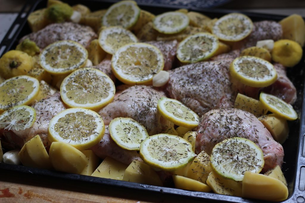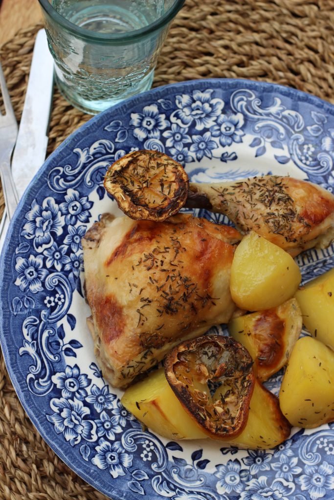 • sich beim Garen die Aromen von Zitrone, Knoblauch, Thymian, Huhn und Kartoffeln perfekt miteinander verbinden