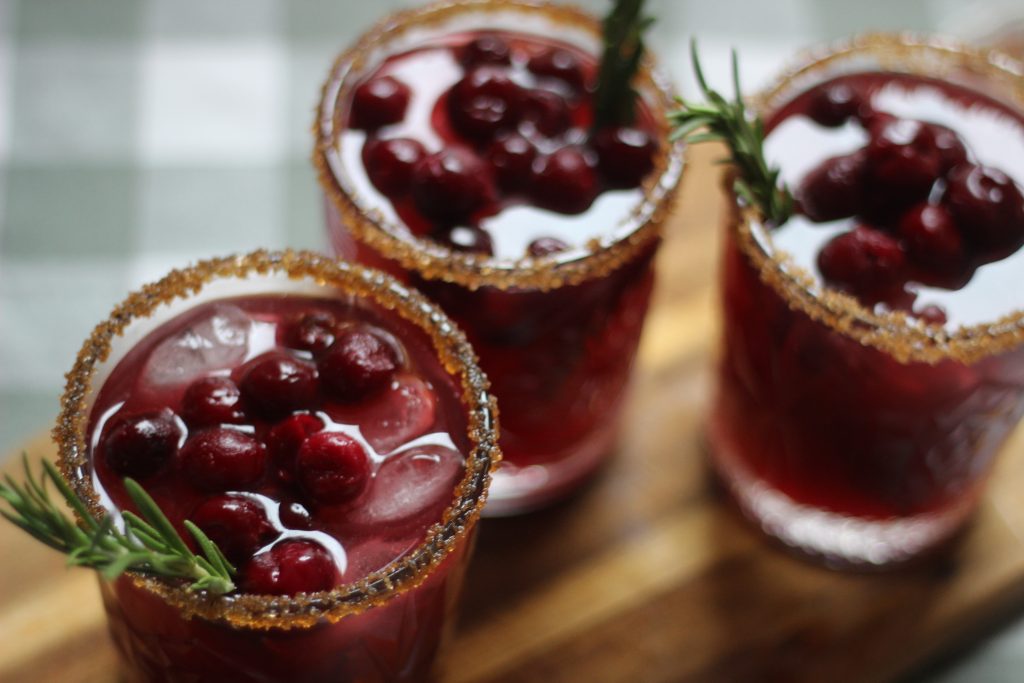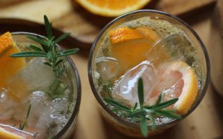 Den Mocktail durch ein feines Sieb abseihen, über Eiswürfel in schöne Gläser gießen. Mit ein paar gefrorenen Kirschen und einem Rosmarinzweig dekorieren.