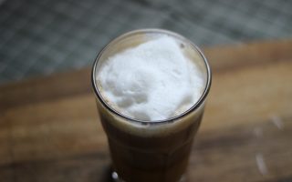 Die Glasränder kurz in Wasser tauchen und dann in braunen Zucker drücken. Trocknen lassen, damit der Zuckerrand fest wird – das sieht besonders hübsch aus.