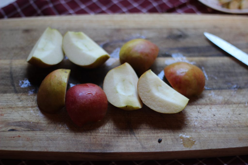- Zum Schluss werden die Äpfel noch geschnitten und beiseite gestellt.