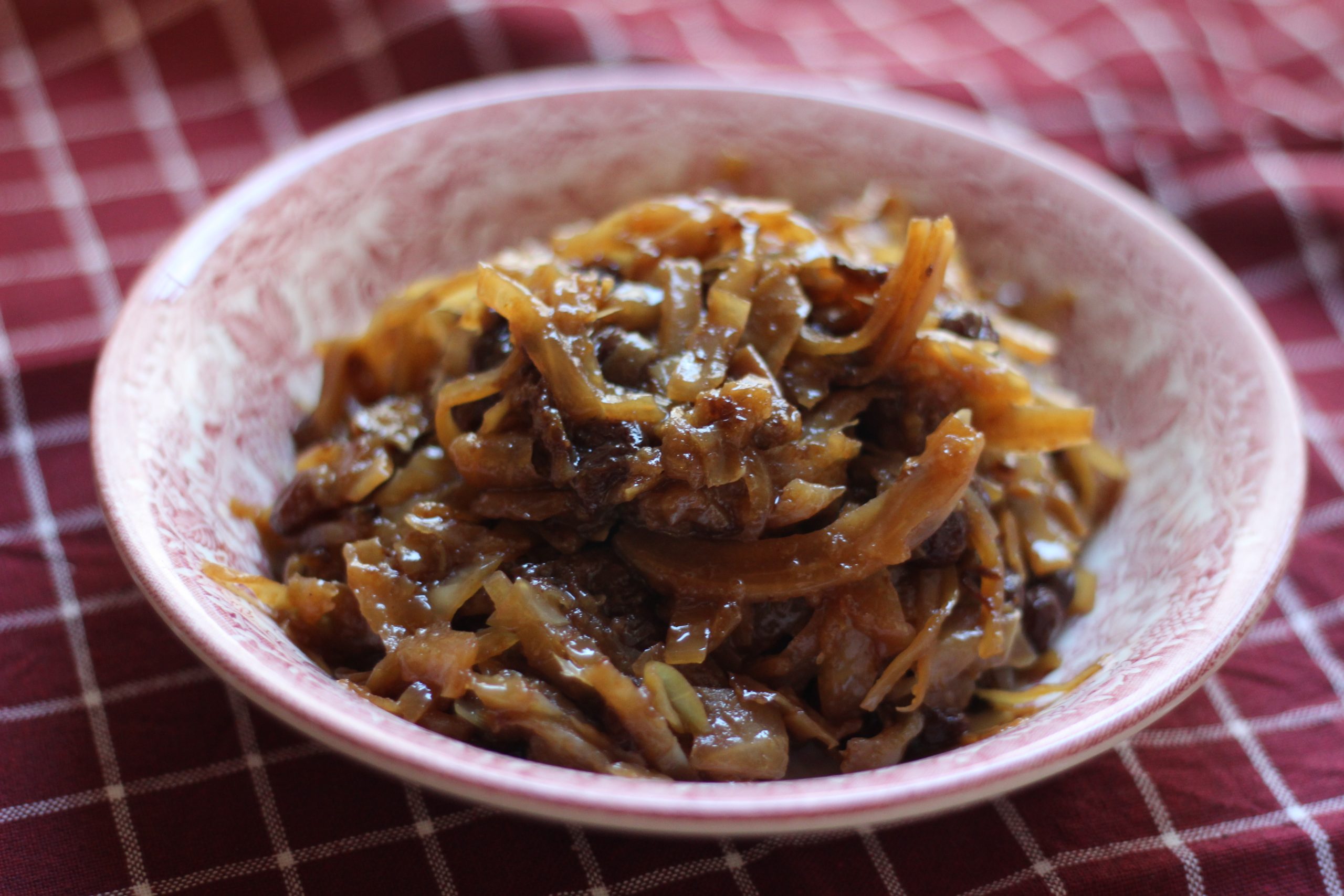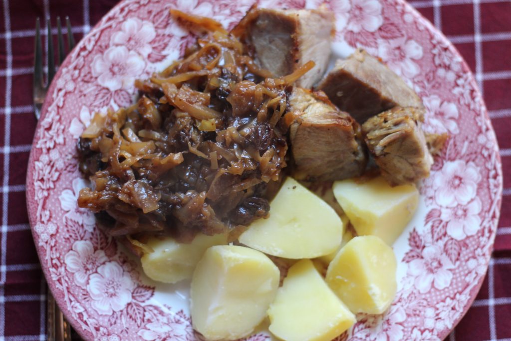 Schmuakomst – gedünsteter Weißkohl ist eine deftige Gemüsebeilage aus Weißkohl und Trockenfrüchten.