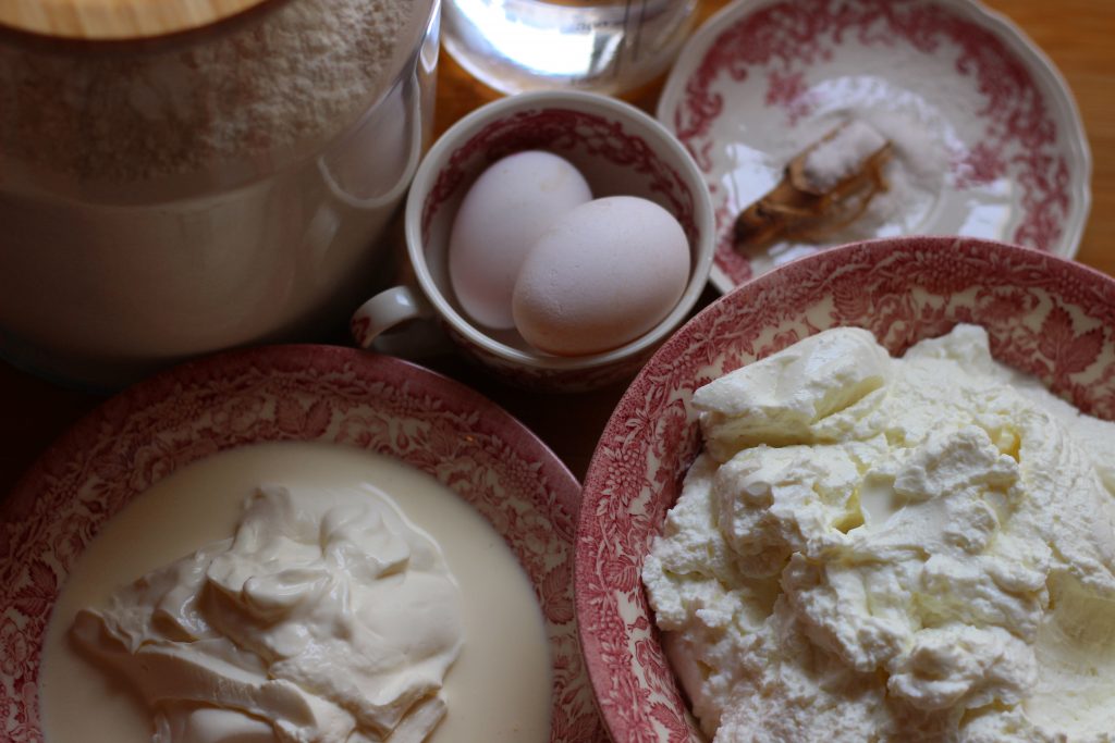 In meiner Familie haben wir Wrennikje immer mit Schmauntfat gegessen. Das ist eine einfache Sahnesauce, die leicht säuerlich schmeckt und perfekt zu Teiggerichten passt.